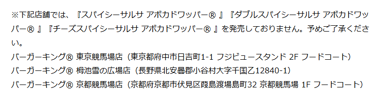 それから一部店舗では取り扱いがないのも重要ポイント。公式発表では、少なくとも「東京競馬場店」「栂池雪の広場店」「京都競馬場店」は販売対象外として明記されてたよ。