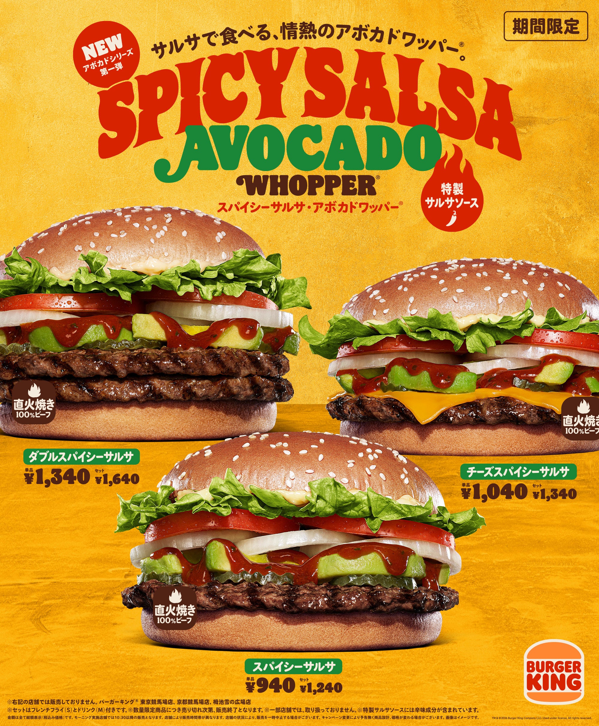 バーガーキングは2月27日より、「アボカドワッパー」の新作「スパイシーサルサ・アボカドワッパー」3種を期間限定で発売します。