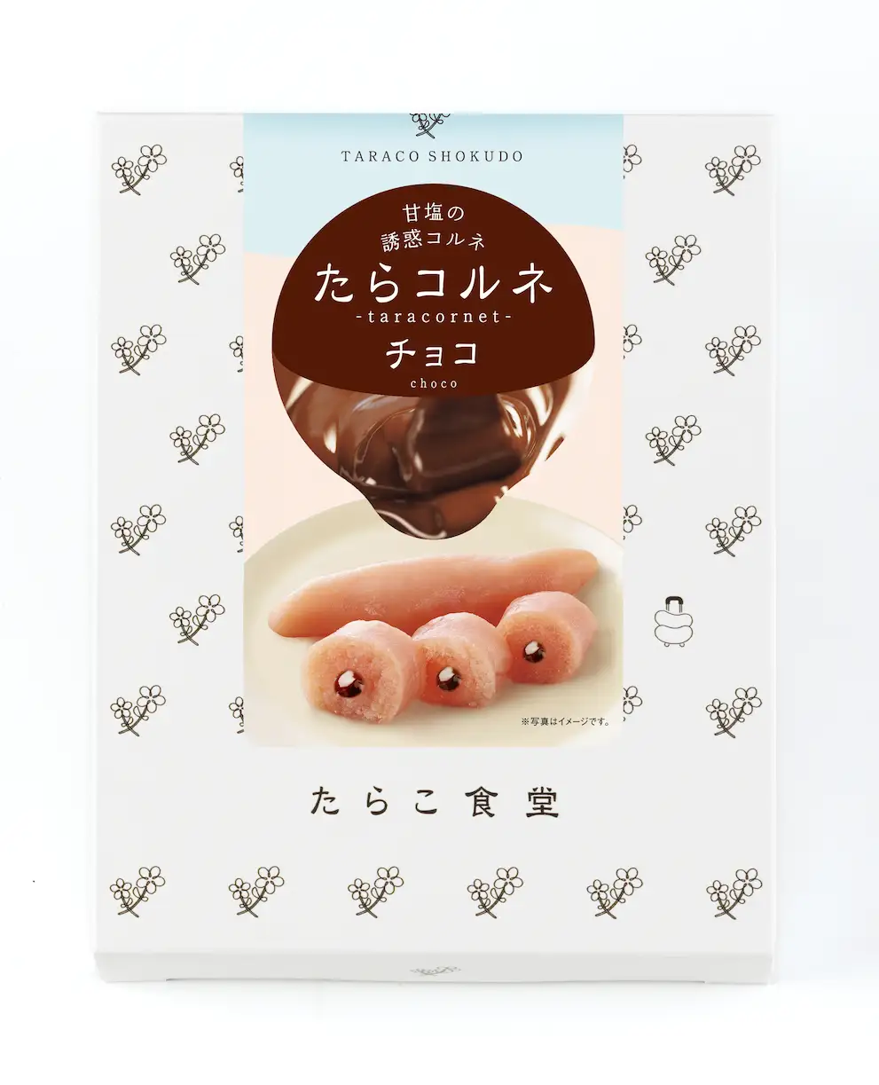 結論、たらコルネは「生のたらこに具材を入れる技術」を使って、“たらこの中にペーストを注入する”シリーズ。名前の由来はパンのコルネ(コロネ)で、空洞にクリームを詰める発想を“たらこ”に置き換えた感じだよ。今まで海苔やチーズなどのフレーバーがあり、今回のチョコはシリーズ初のスイーツ味。だからこそ、話題性も高め〜!