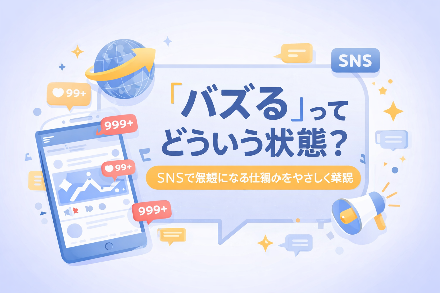 この記事では、「バズる」の意味や、SNSで話題が広がる仕組み、ただよく見るだけとの違いまで、初心者さん向けにやさしく整理していきます。
