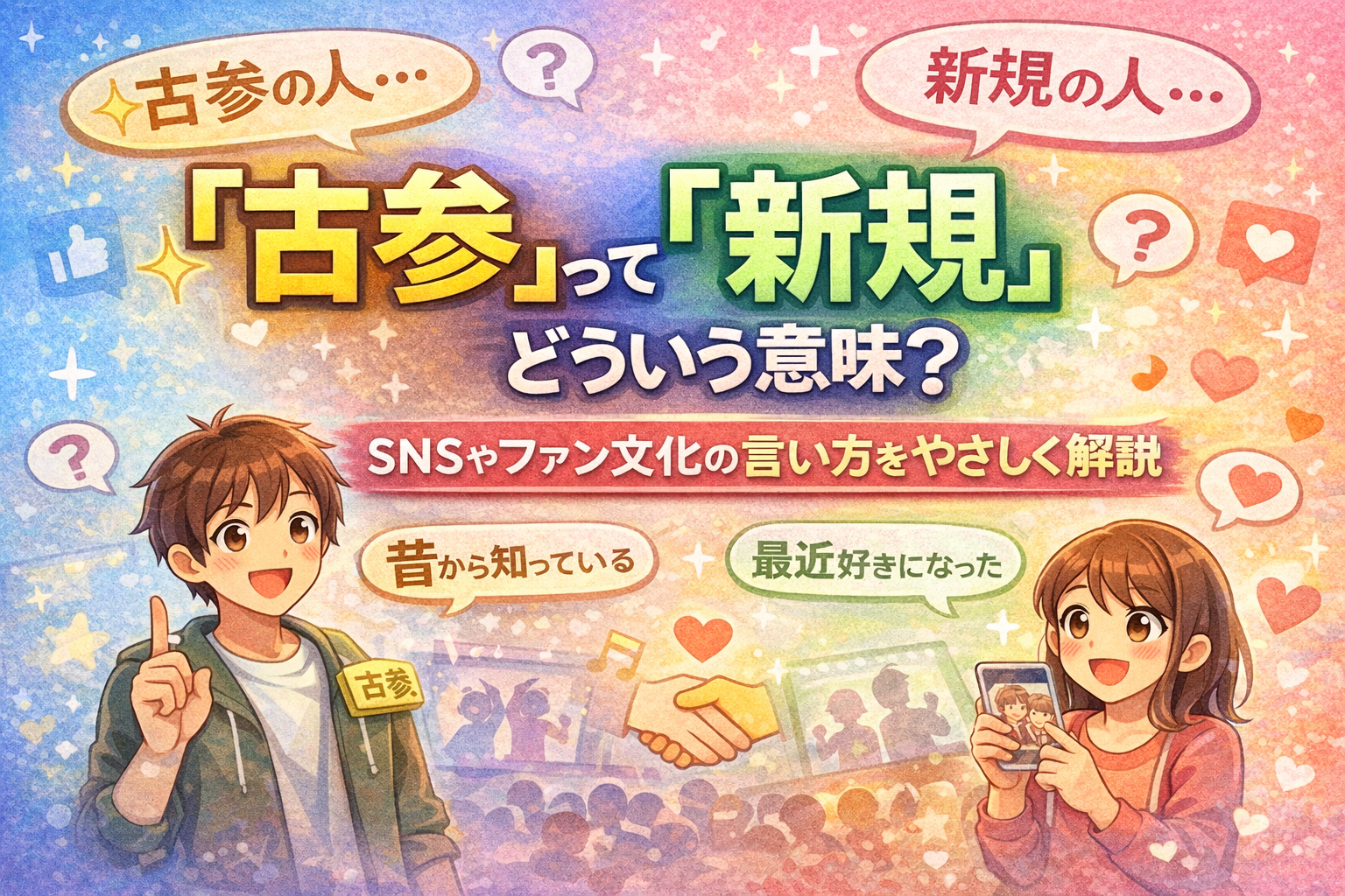 この記事では、「古参」「新規」の意味やSNS・ファン文化での使われ方、言葉にちょっとピリッとした空気が出る理由、使うときに気をつけたいことまで、初心者さん向けにやさしく整理していきます。