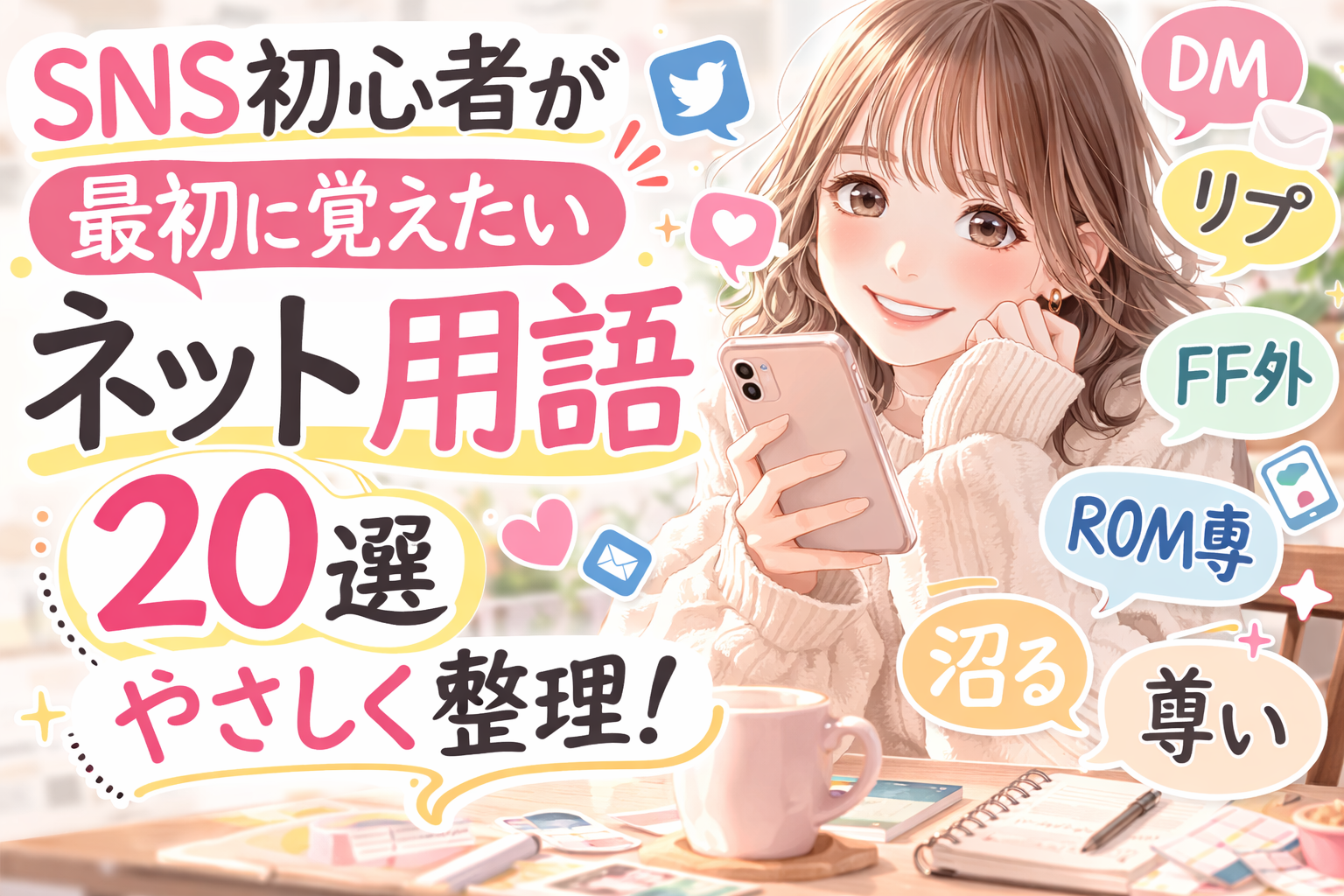 この記事では、SNS初心者さんがまず知っておくとラクになるネット用語を20個にしぼって、意味や使われ方をやさしく整理していきます。