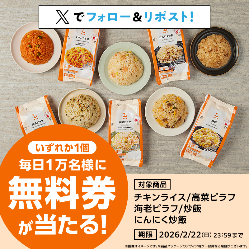 ローソンのXキャンペーンは、2/18〜2/22の5日間、毎日1万名に冷凍米飯の無料引換券が当たるチャンス!参加はフォロー&リポストだけで、その場で結果が分かるのがうれしいよね。引換期限は2/25 23:59までだから、当たったら早めに交換がおすすめ。節約したい人は、まずは今日の分だけでも気軽にチャレンジしてみて〜!